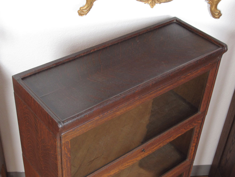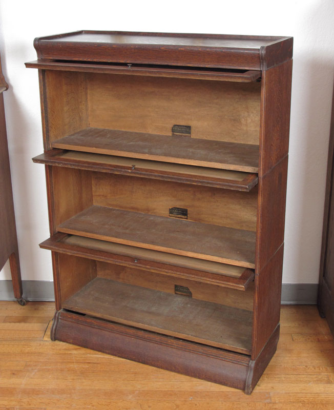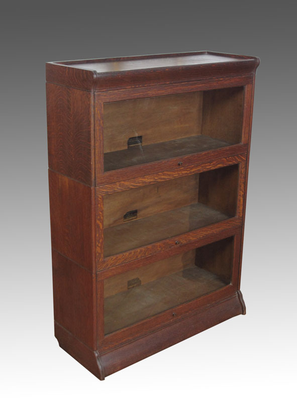 HALE 3 STACK GOLDEN OAK BARRISTER BOOKCASE: Original Hale label on all 3 stacks. 48 1/2'' h. x 13 3/4'' x 34''.