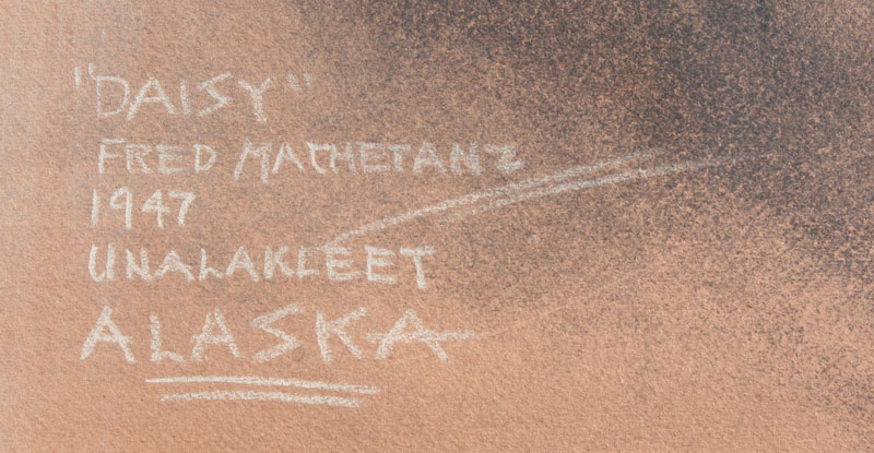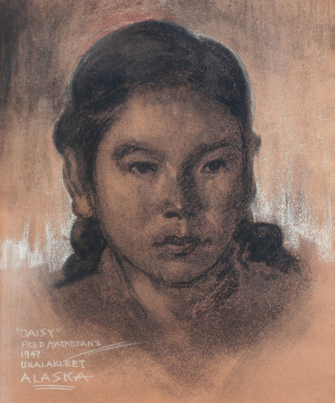 MACHETANZ, Fred, (American, 1908-2002): Charcoal Portrait of Daisy, sight size 15 1/2'' x 12 1/2'', signed and titled ''Daisy'', picture of young Eskimo girl, dated 1947, marked Unalakleet, Alaska, unframed.