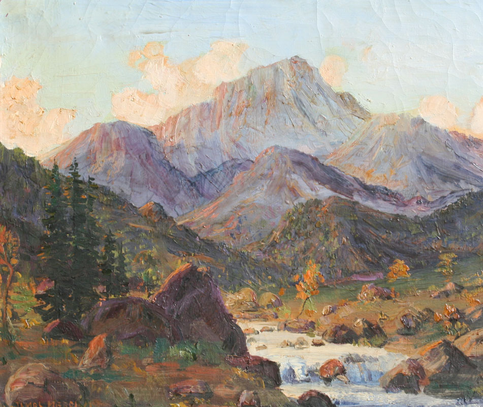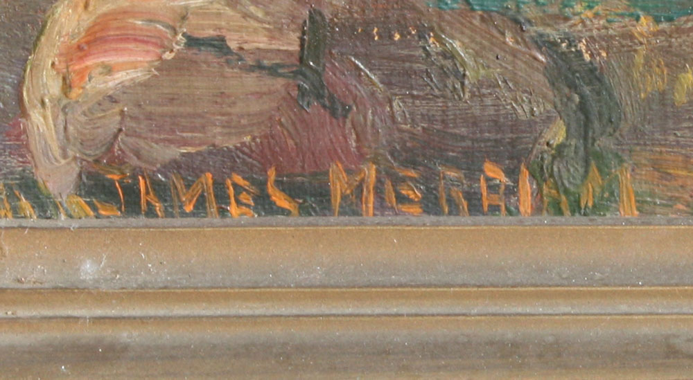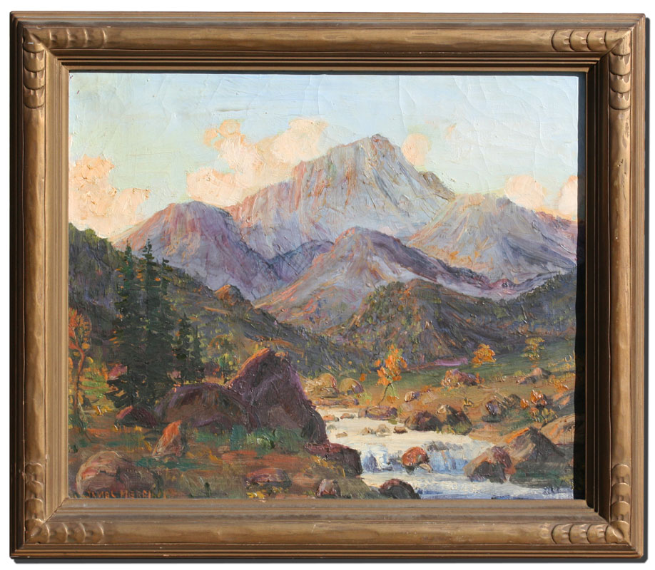 MERRIAM, James, (Canadian, 1880-1951): Western River Valley Landscape, OIL/Canvas, 20'' x 24'', signed, period carved and gilded frame with minor wear, 24 1/2'' x 28 1/2''.