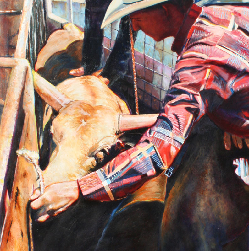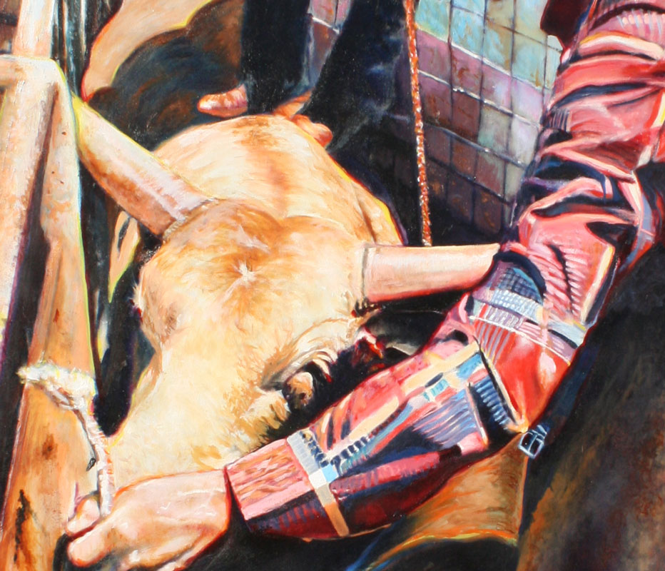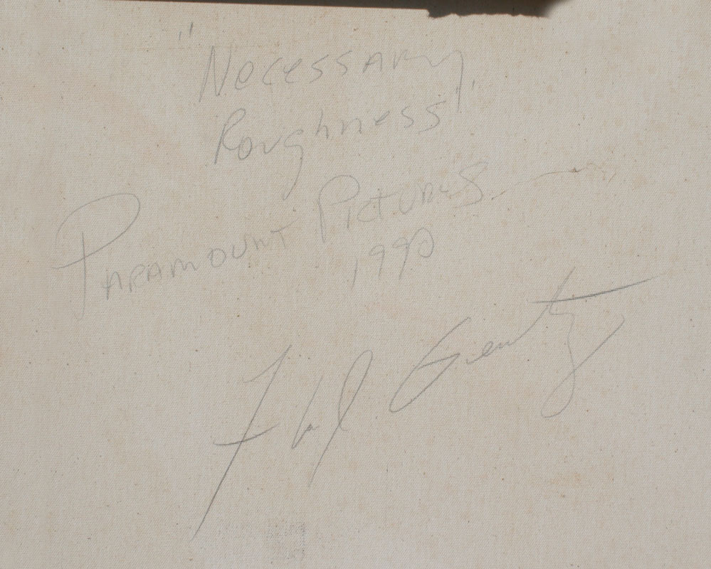 GENTRY, Floyd, (American, 1950-): Cowboy Handling Steer, OIL/Canvas, 60'' x 48'', signed verso, dated 1990. Original prop from the movie ''Necessary Roughness'' in 1990 from Paramount Pictures starring Scott Bacula.