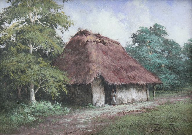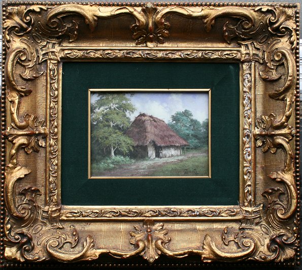 ZEPEDA, Marco Antonio, (Mexican, 1938-): ''Yucatán, Mexico, '72'', depicts Thatched Hut in Landscape with Figure, OIL/Masonite, 6'' x 8'', signed, titled and dated verso, heavy gilded frame, 16'' x 18''.