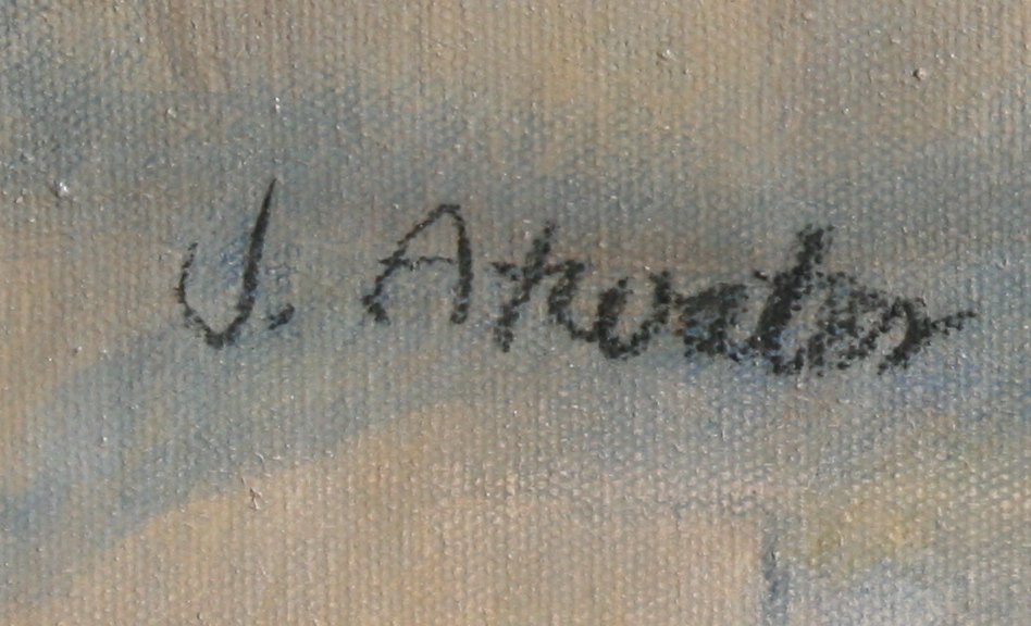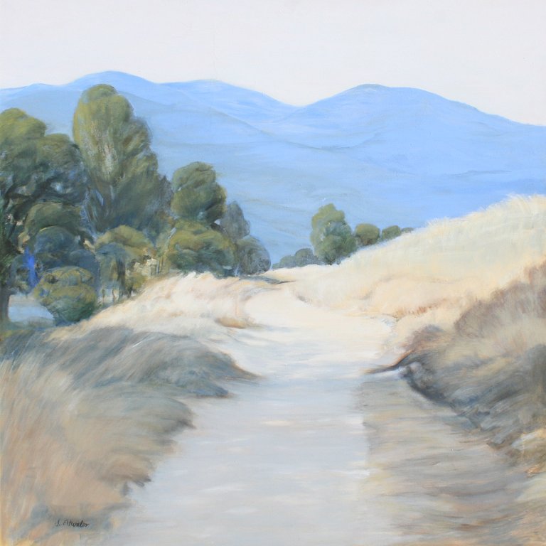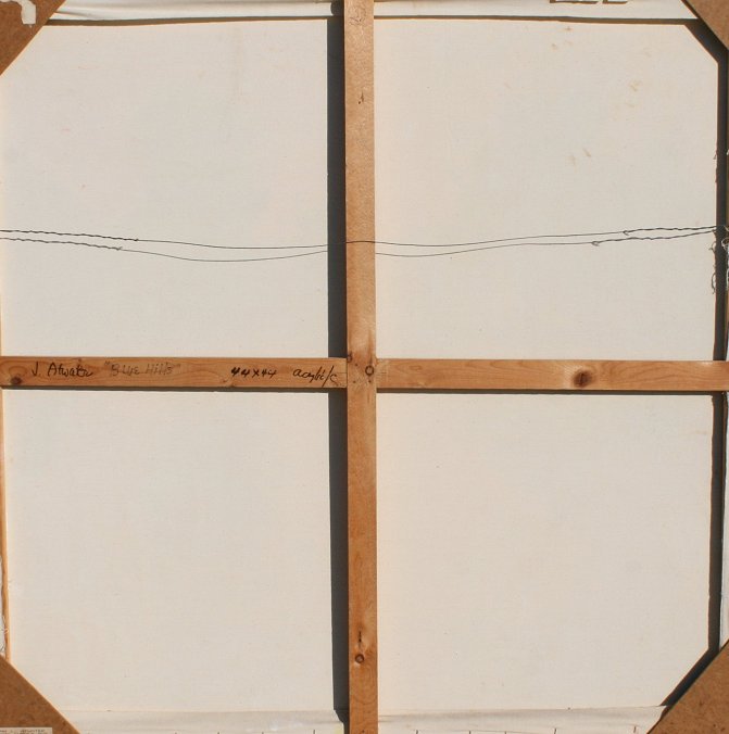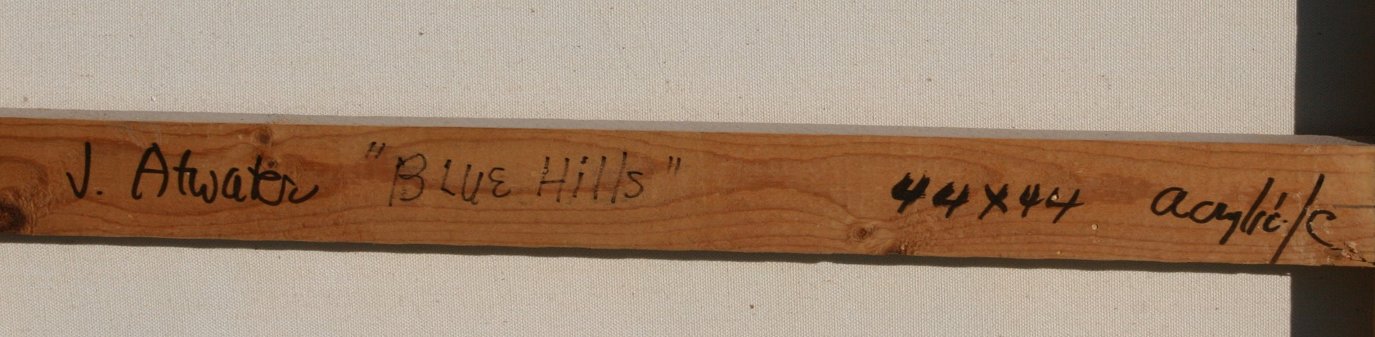 ATWATER, Jane, (American, 20th C): ''Blue Hills'', Acrylic on Canvas, 44'' x 44'', signed, titled verso, metal thin edge frame.