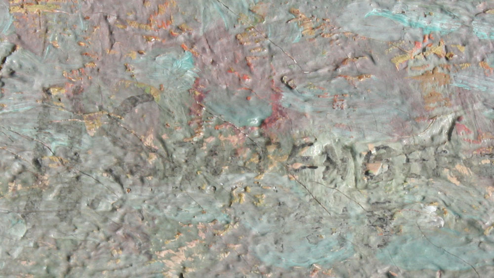 CONDITION: Scattered cracklure to the heavily applied paint areas.