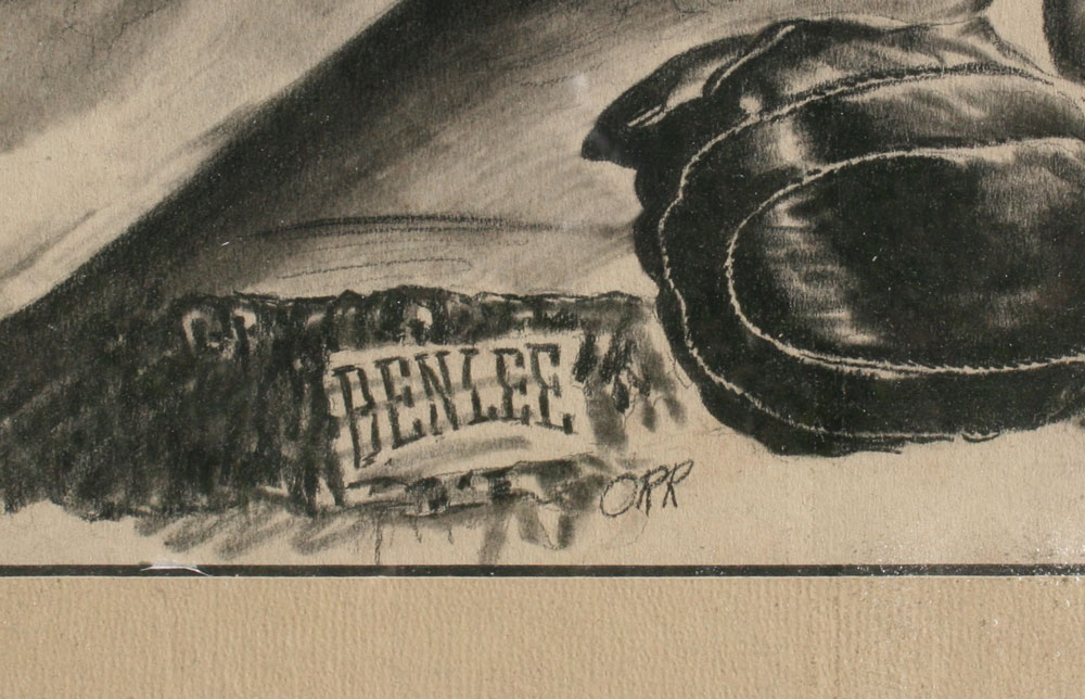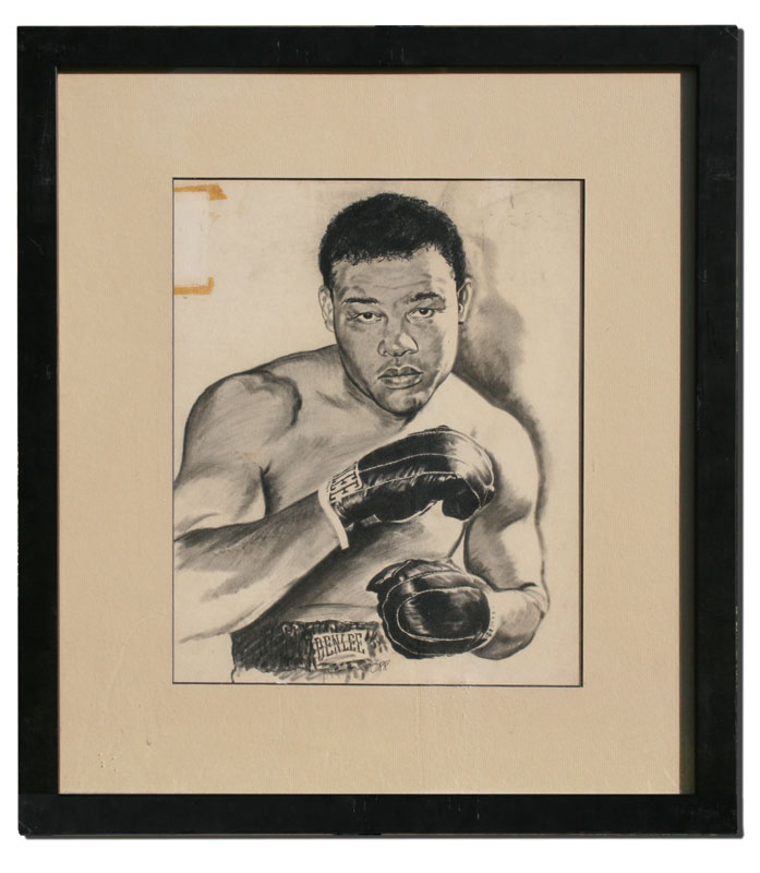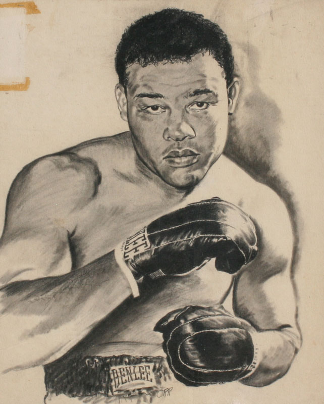 ORR, Alex, (American, 20th C.): Joe Louis, The Brown Bomber, Pencil/Pen/Wash Illustration, 20'' x 15'', signed, framed, 24'' x 21'', from the artist's estate. Orr was assigned the task of making the illustrations for the U.S. Army Encyclopedia, and for a time did all of Texaco's illustrations.