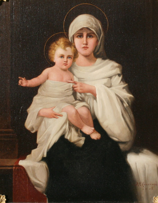 KAVANAGH, Joseph Malachy, (1856 - 1918): Madonna & Child, OIL/Canvas, 20'' x 16'', signed and dated 1908, pierce carved and gilded frame with wear, 24'' x 20''.