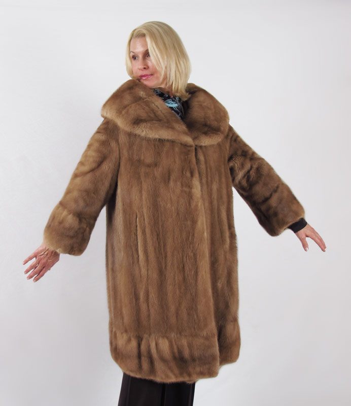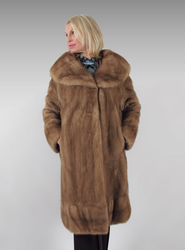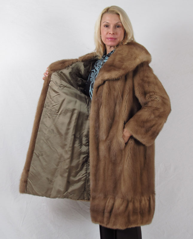 MINK COAT: With generous shawl collar and bell sleeves. approx. 42''l.