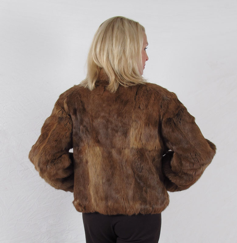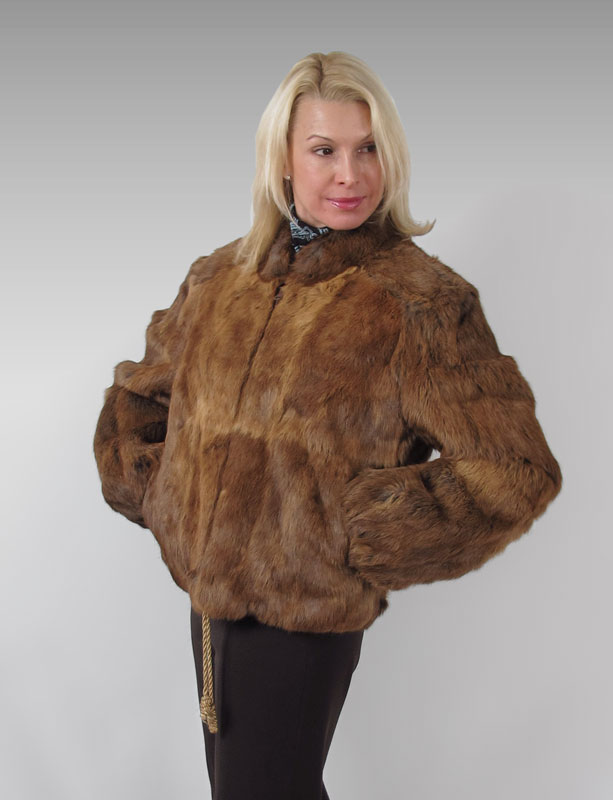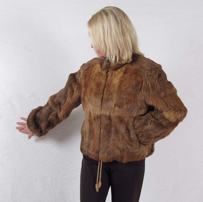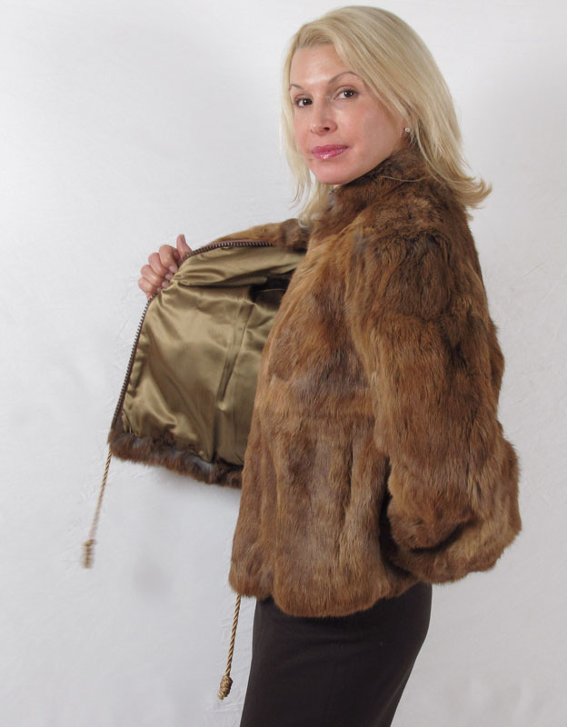 JACQUE SAINT LAURENT FUR JACKET: Zipper front, drawstring bottom.