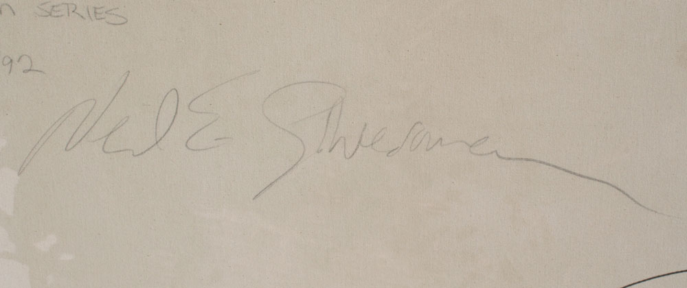 CONDITION: Stretcher bar wear. Needs cleaning. Some damage to the frame.