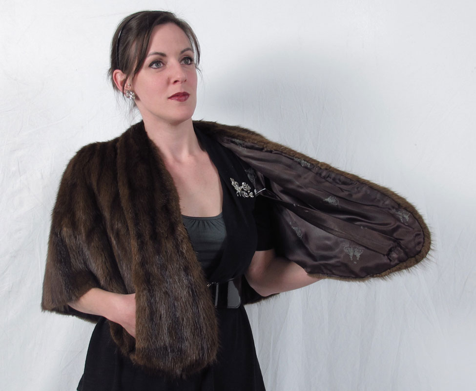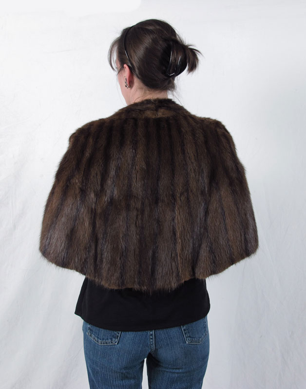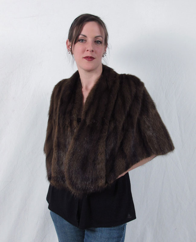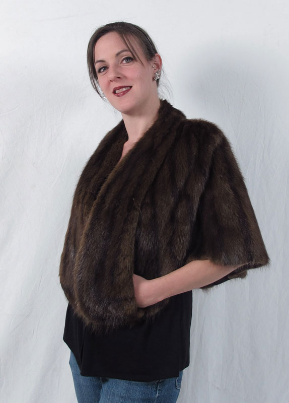 MINK FUR WRAP: Extended collar goes to bottom to form pockets. 22 1/2'' l.
