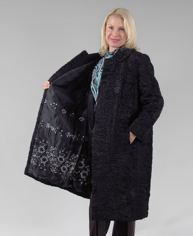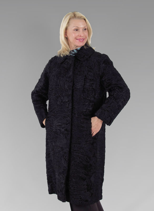 PERSIAN LAMB FULL LENGTH FUR COAT: Approx. 43''. Swakara label.