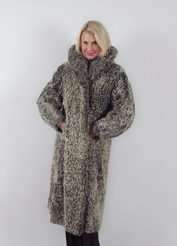 PERSIAN LAMB FULL LENGTH FUR COAT: 46'' L. with button front, fitted cuffs.