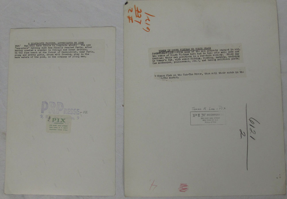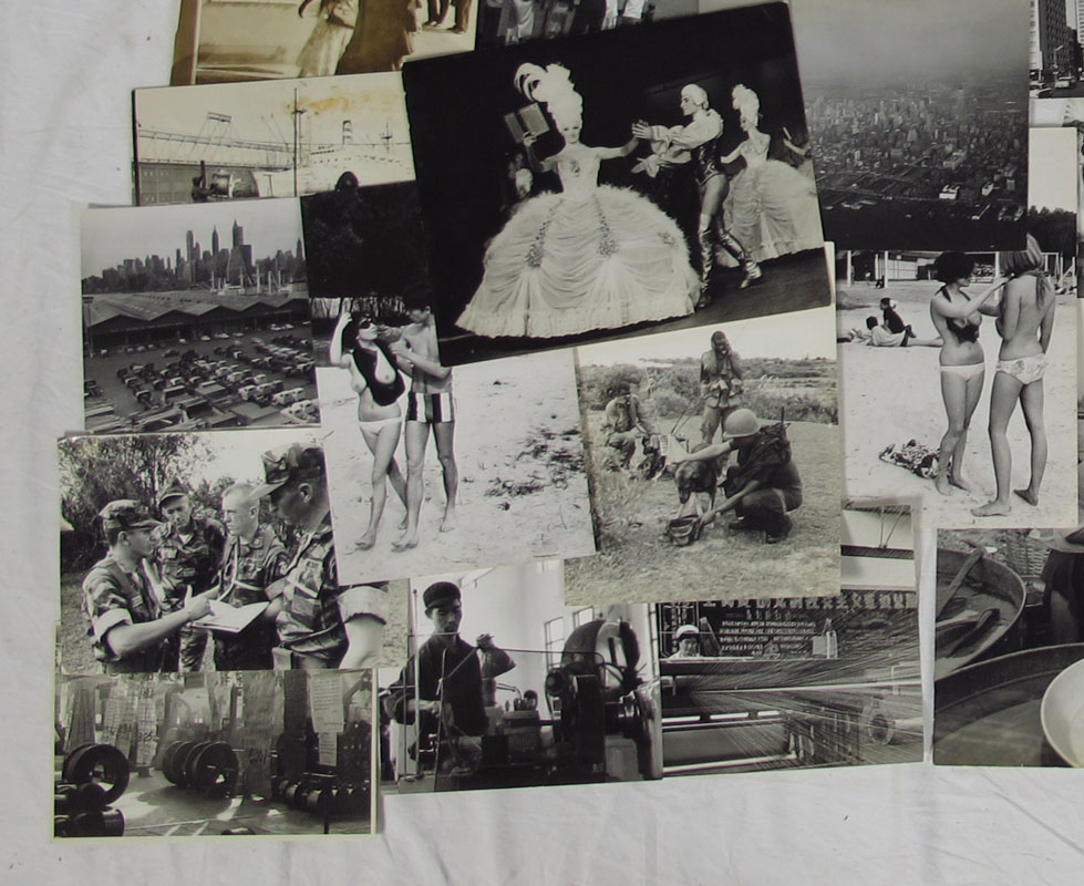 COLLECTION OF VINTAGE PHOTOGRAPHS: An eclectic collection of approx. 42 photographs from the 1940's - 1970's, most are from photographers who worked for Pix Incorporated and appear to be shots for magazines and newspapers. Content includes Vietnam, New York City, Moulin Rouge, French nude beach and Princess Margaret's visit to Sweden and more. Also include approx. 14 studio stills including Sound of Music, High Plains Drifter, Charlie Chaplin, Dracula & Son. Lot also includes collection of early to mid 20th century Chinese postcards and envelopes with stamps.