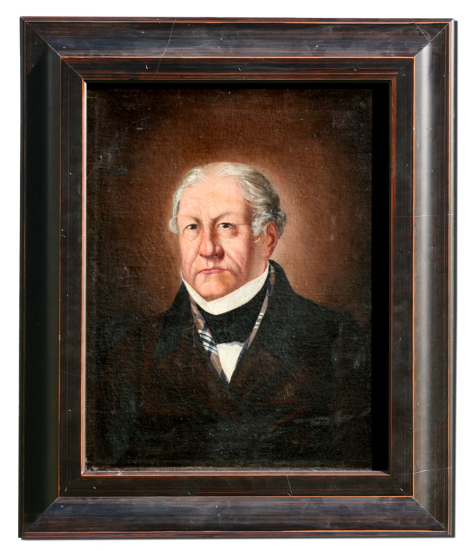 19TH CENTURY PORTRAIT OF A GENTLEMAN: OIL/Canvas, no visible signature, 25'' x 19 1/2'', contemporary faux grained wood frame, 33'' x 28''.