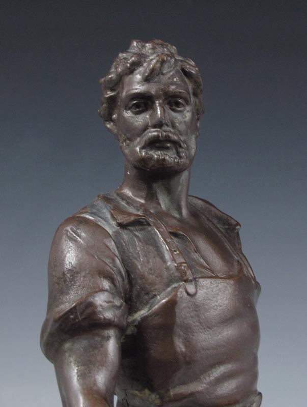 CONDITION: The alabaster base shows wear, the Blacksmith has been attached to the base with epoxy.
