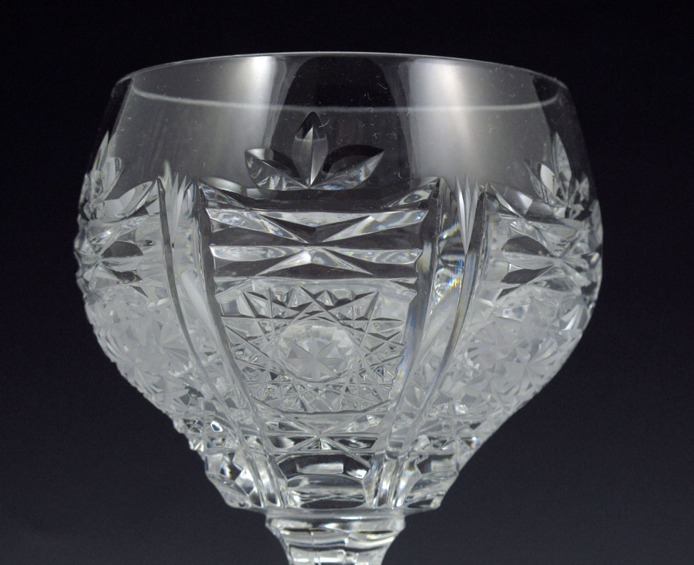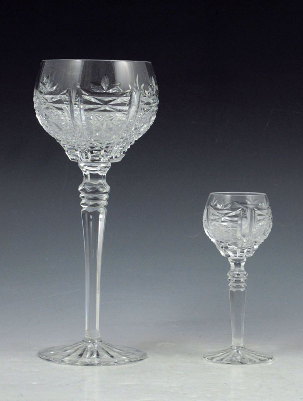 BOHEMIAN CUT GLASS STEMWARE: 10 wine hocks and 12 cordial.