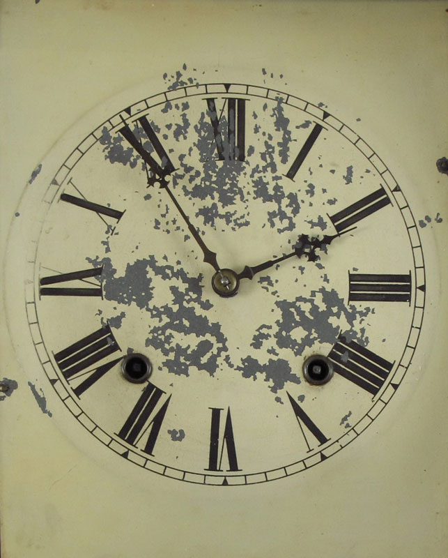 CONDITION: Note paint flaking on face, areas of veneer loss.