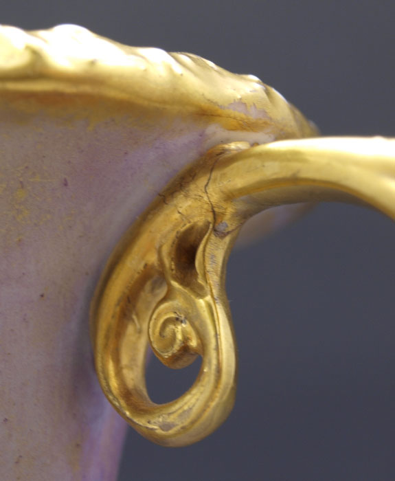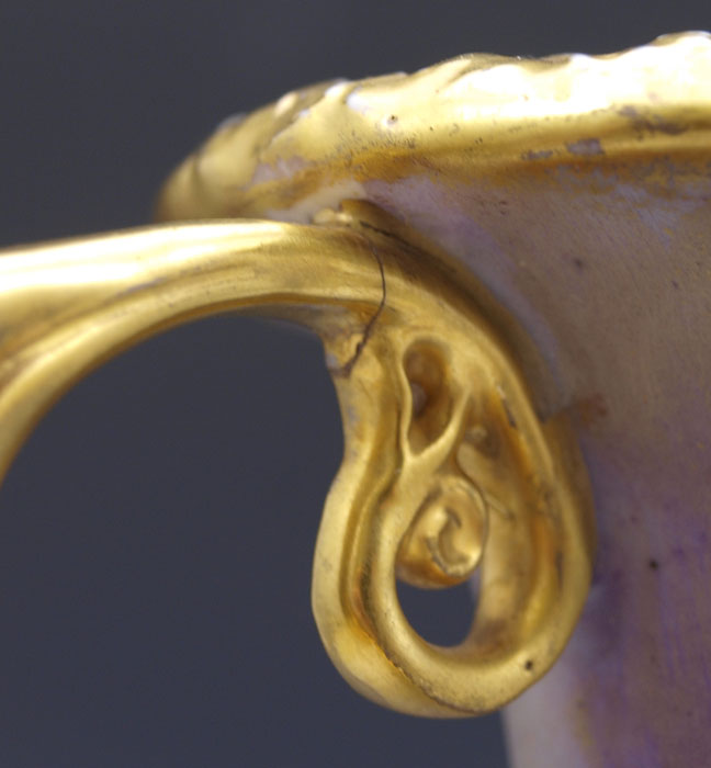CONDITION: Minute hairline on the upper most part of the handle, under the curve of the lip.