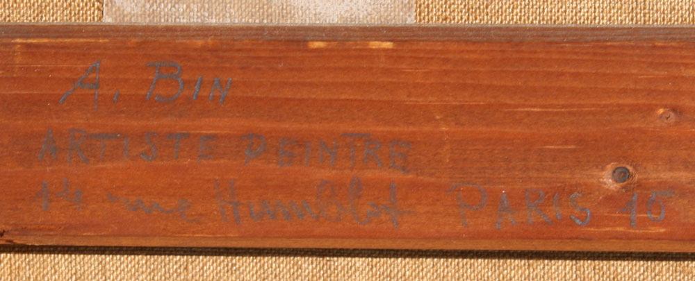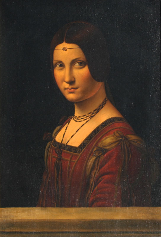 PORTRAIT OF LUCRETIA CRIVELLI AFTER LEONARDO DA VINCI BY A. BIN: OIL/Canvas, 21 1/2'' x 15'', signed in the stretcher verso, encased in exceptional gilded and carved frame with repair, 27'' x 20''.
