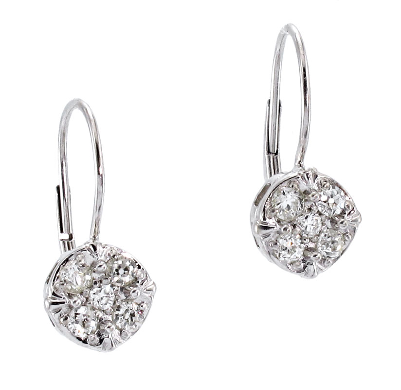 .55 CTW OLD EUROPEAN DIAMOND GOLD EARRINGS: 14k gold earrings contain ten round old European cut diamonds. Weight: .55 ct. approx. Rated VS in clarity and H-I in color. The diamonds are prong est. Wire and lever back closures. Weight: 2.4 grams.