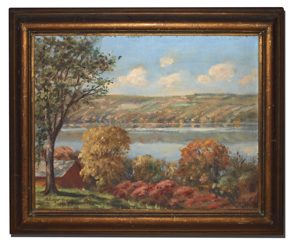 GEORGE, S. Edgar, (American, 20th c.): ''Owasco Lake'', OIL/Canvasboard, 11 3/4'' x 16'', signed lower left, original frame with wear, 15 1/2'' x 19 1/4''.