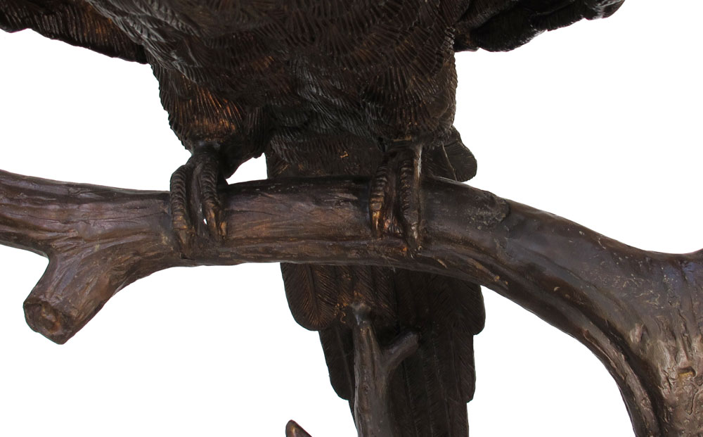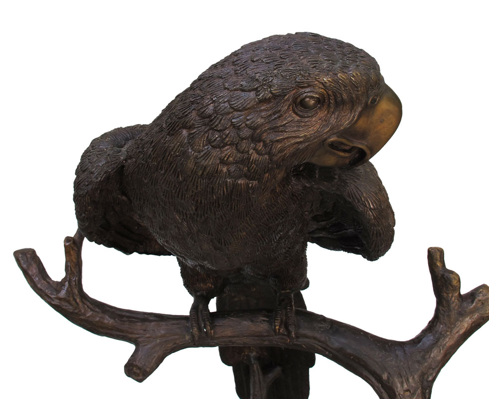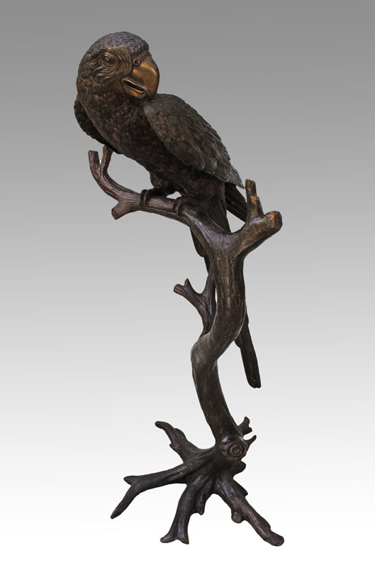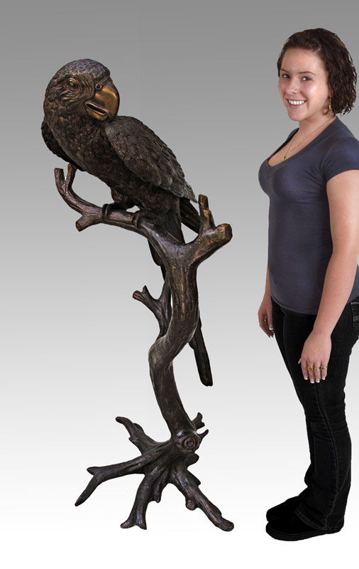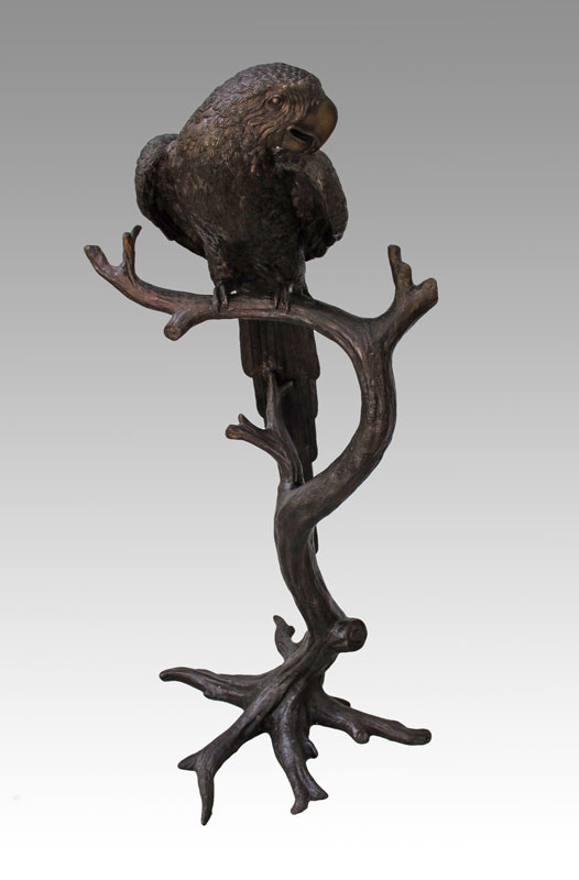 LARGE BRONZE PARROT SIGNED PHILLIPS: Sitting on a tree branch, approx. 5 feet tall.
