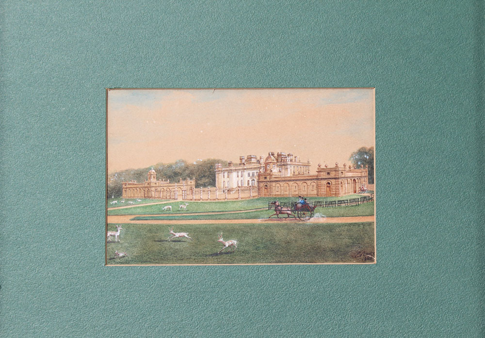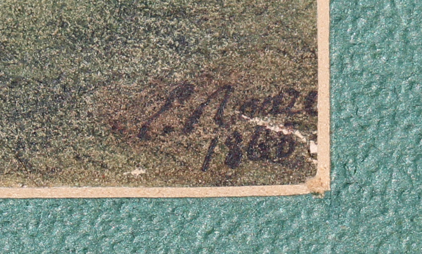 19th C. PAINTING ILLEGIBLY SIGNED E. ROARE?: Dated 1860, sight size 5'' x 7 1/2'', wooden frame, 13'' x 16''.