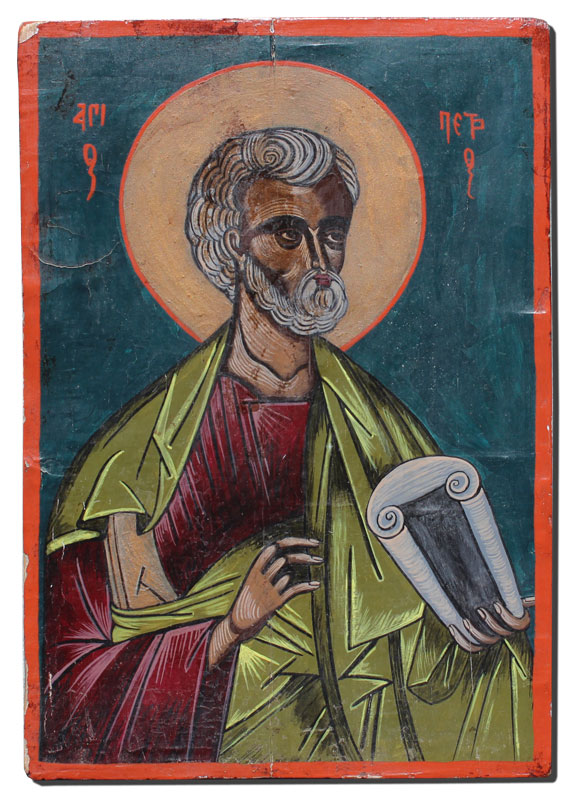 LATE 19TH/EARLY 20TH C. GREEK ICON DEPICTING BEARDED SAINT: 10 1/8'' x 7'', unframed. Age appropriate wear.