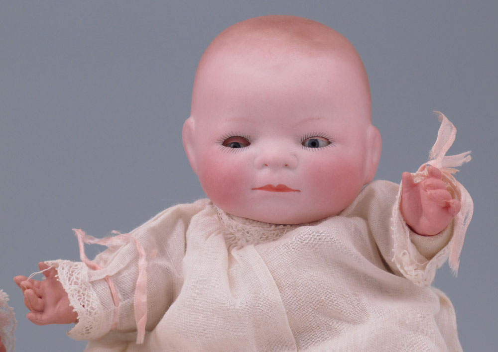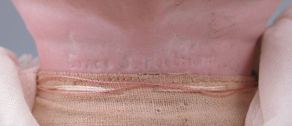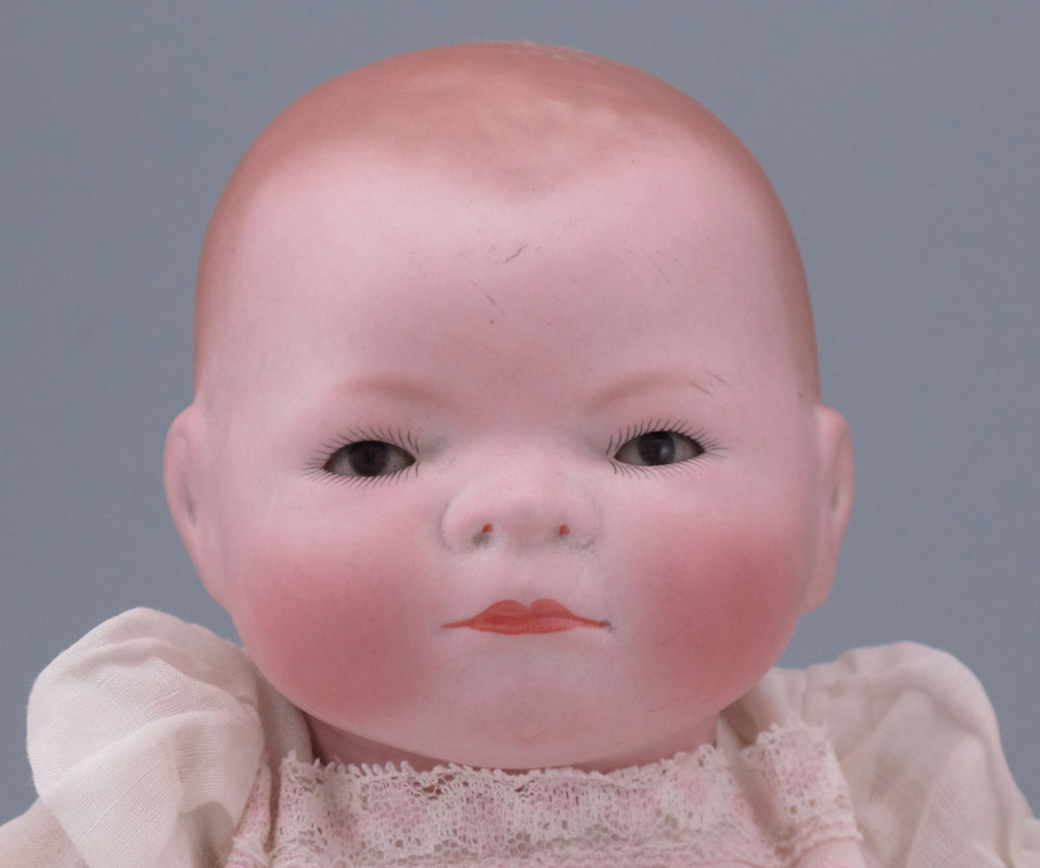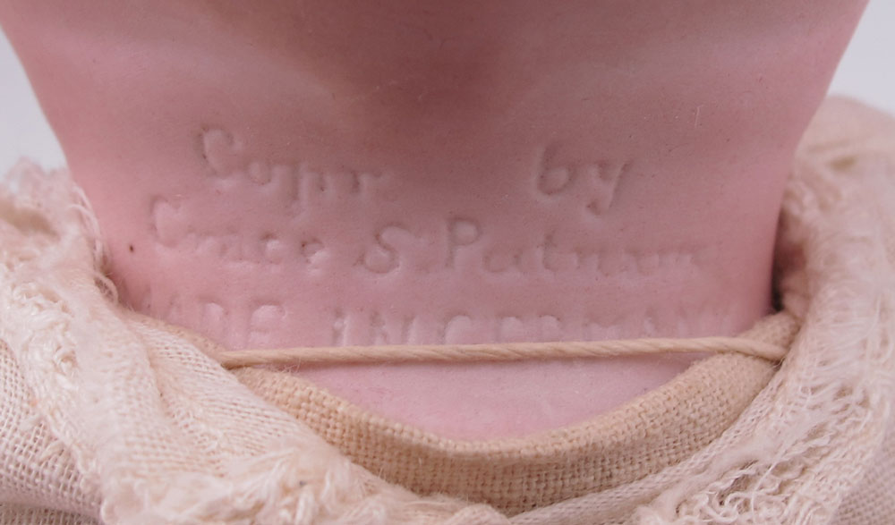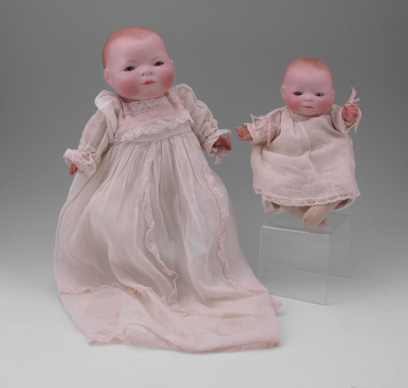 2 GRACE PUTNAM BYE LO BABY DOLLS: 8 inch and 11 inch bisque head dolls, sleepy eyes, painted closed mouths. The bodies are cloth, the hands plastic.