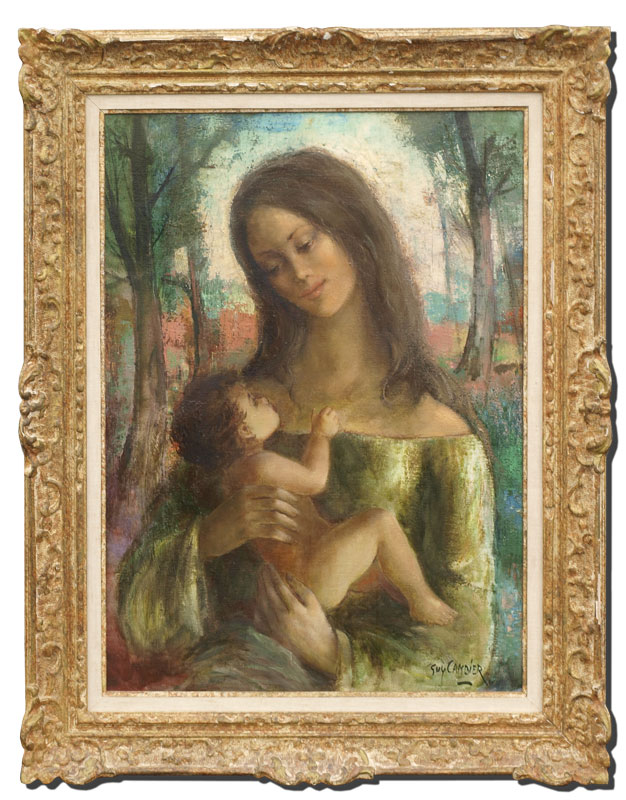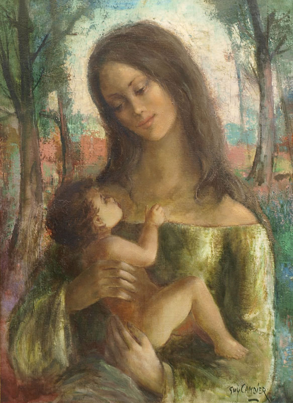 CAMBIER, Guy, (French, 1923-): Mother and Child, Oil/Canvas, 28 3/4'' x 21 1/2'', signed lower right, original carved and gilded frame with wear, 36'' x 29''.