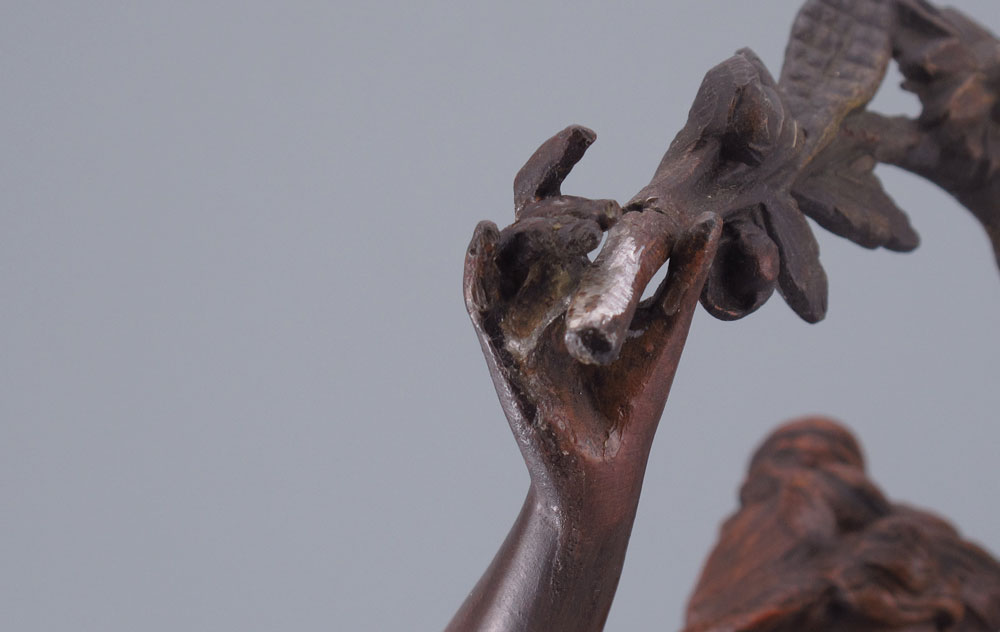 CONDITION: Repair to area where garland attaches to the hands of one figure.