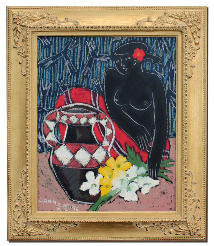LIANG YIFEN, (Taiwanese, 1937-): ''Fresh Cut Flowers'', Oil/Canvas, 30'' x 24'', signed lower left and dated '96, custom gilded and carved frame, 39'' x 34''.