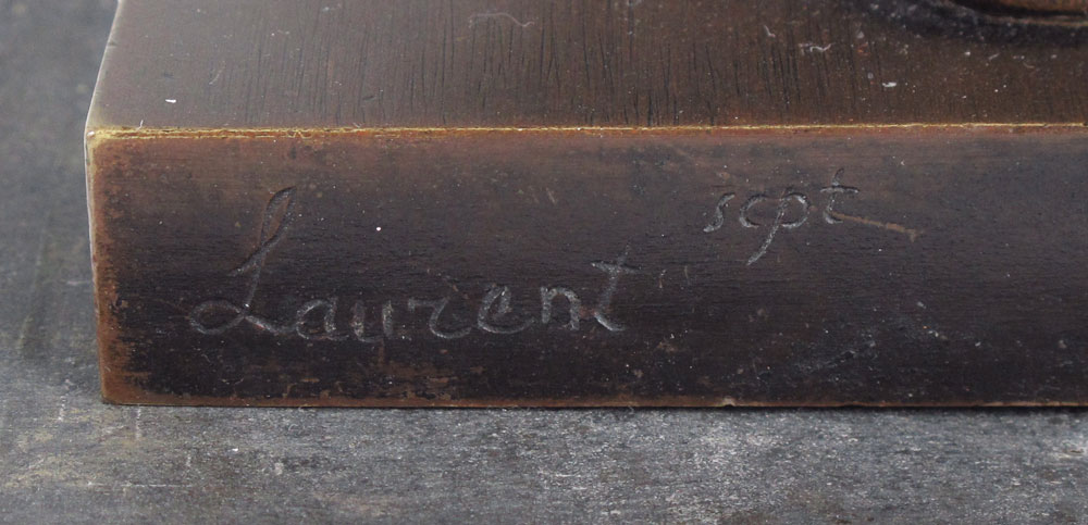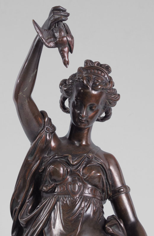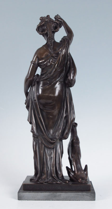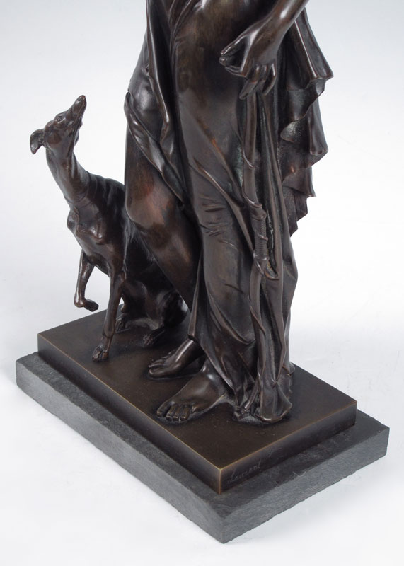 LAURENT, Eugene, (French, 1832-1898): Diana the Huntress, Bronze, 22'' h, incised signature, rests atop a slate plinth, but not affixed.