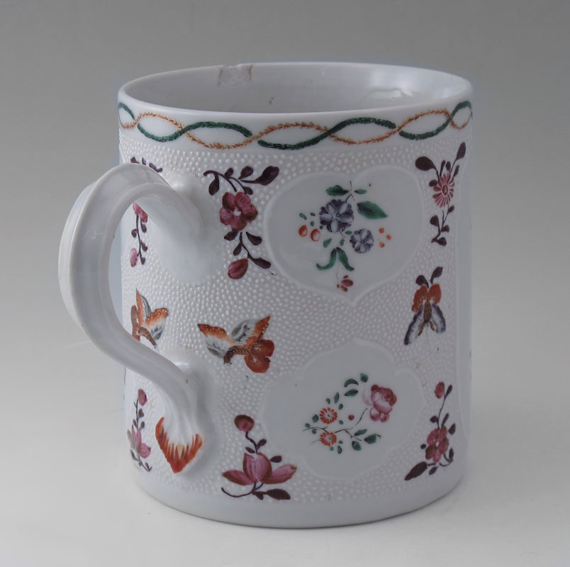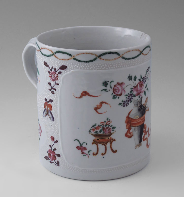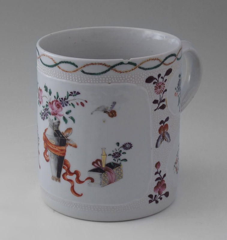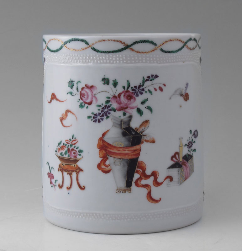 LARGE THAN MOST CHINESE EXPORT CIDER MUG: Hand painted decoration on white, approx. 5 1/2'' high x 4 3/4'' dia.