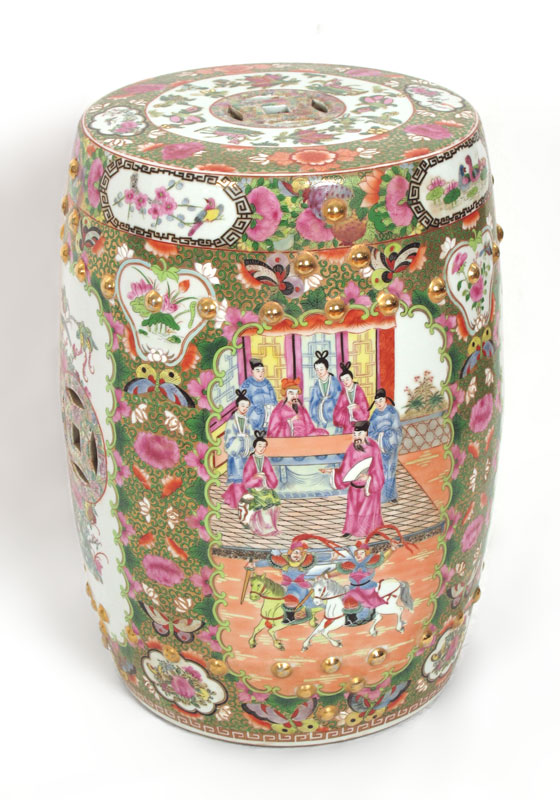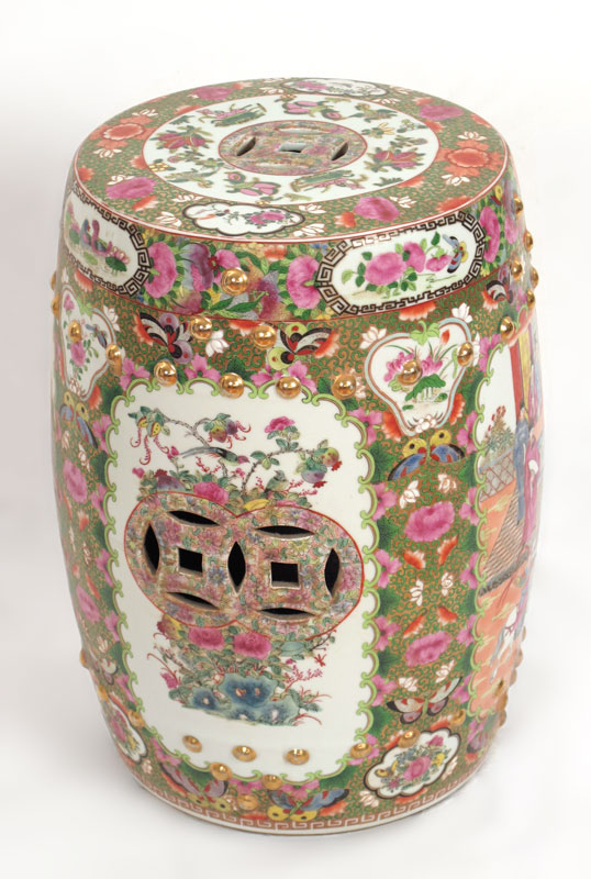 CHINESE ROSE MEDALLION GARDEN SEAT: Approx. 19'' tall.