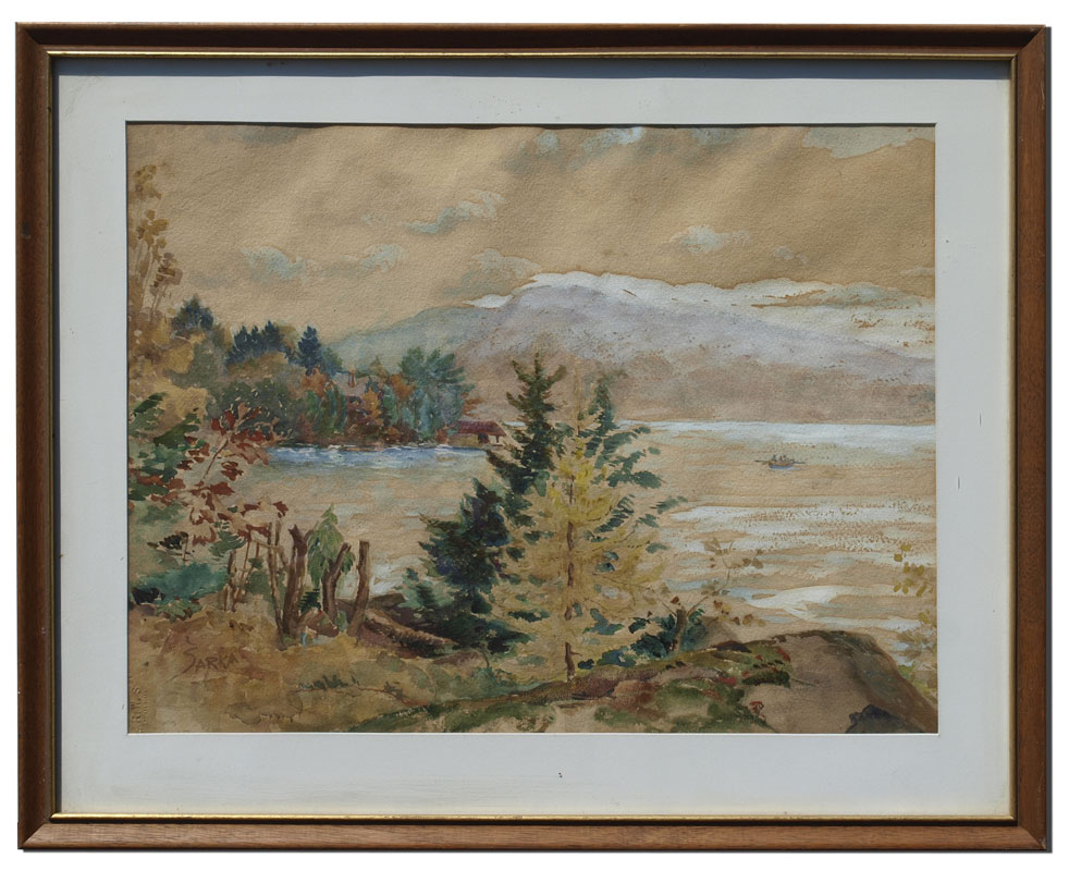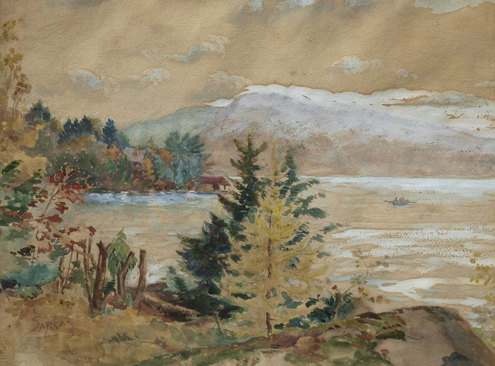 SARKA, Charles, (American, 1879-1960): Lakeside Landscape, Watercolor Heightened With White, sight size 15 1/2'' x 20'', signed lower left, wooden frame 21'' x 26''. Some darkening of the paper with several scattered spots of foxing.