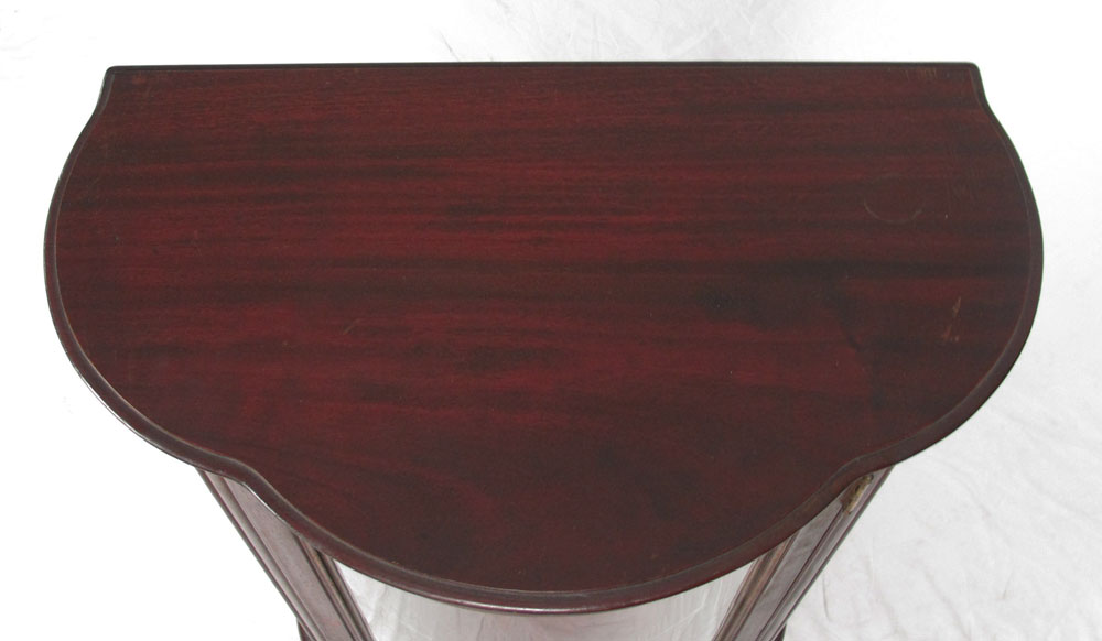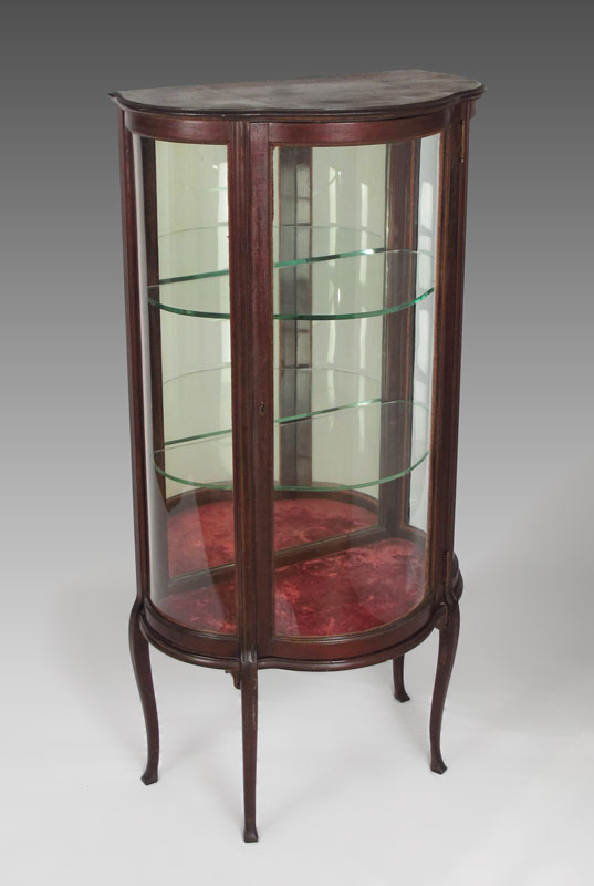 FRENCH STYLE CURIO DISPLAY CABINET: Mirror back, 2 glass shelf interior with velvet lined bottom. 24 1/2'' h. x 14 1/4''.