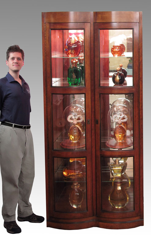 LARGE ILLUMINATED DISPLAY CASE: With 4 adjustable glass shelves. 80 1/2'' h. x 39'' x 16''. Please see matching case next lot.
