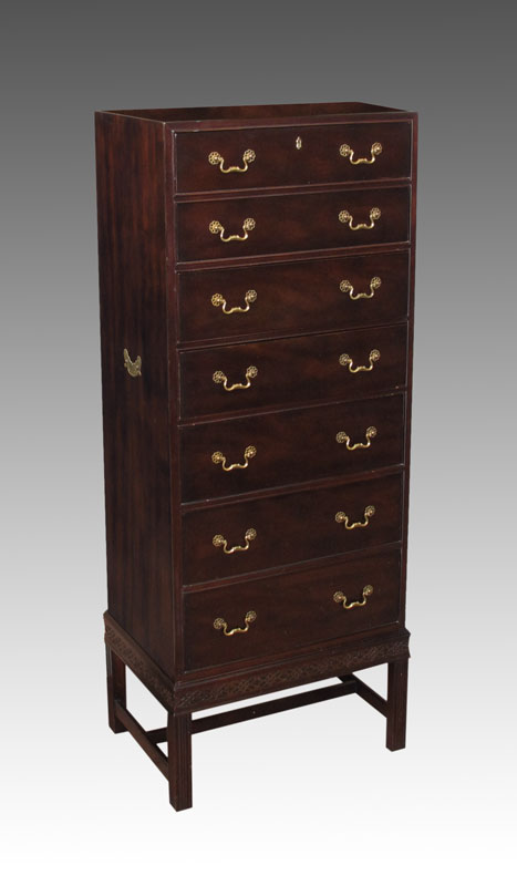 HENREDON CHINESE CHIPPENDALE STYLE 7 DRAWER LINGERIE CHEST: Mahogany, 59 1/2'' h. x 23'' x 16''.