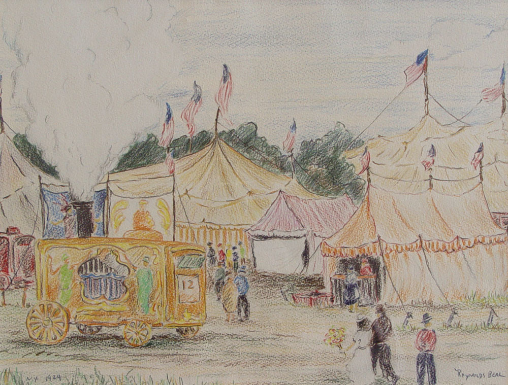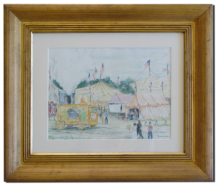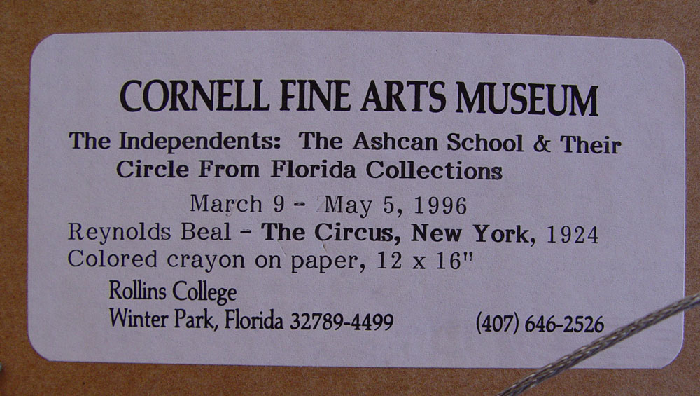 BEAL, Reynolds, (1867-1951): ''The Circus, New York, 1924'', Colored Crayon/Paper, 12'' x 16'', signed lower right, dated lower left, Cornell Fine Arts Museum, labeled verso from the 'Independents: The Ash Can School and Their Circle From Florida Collections', on loan from Rollins College in Winter Park, gilded frame, 23'' x 27''.