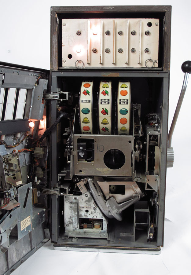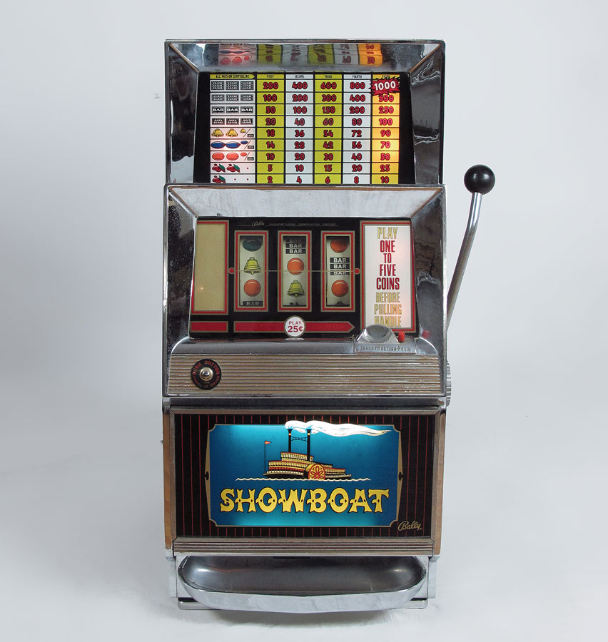 1970'S BALLY SHOWBOAT SLOT MACHINE: Model 952-A, ''Showboat''. All mechanics and lights are in working order. Originally retailed for $2000. 33 1/4'' h. x 19'' x 17 1/4''. Sold with several spare parts. Key in office.