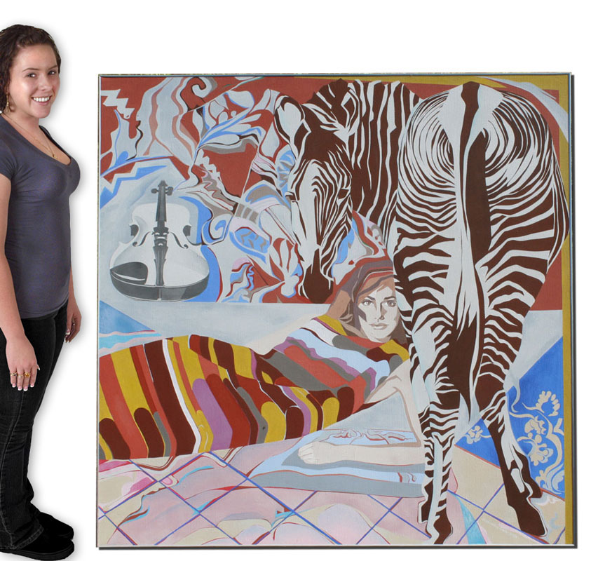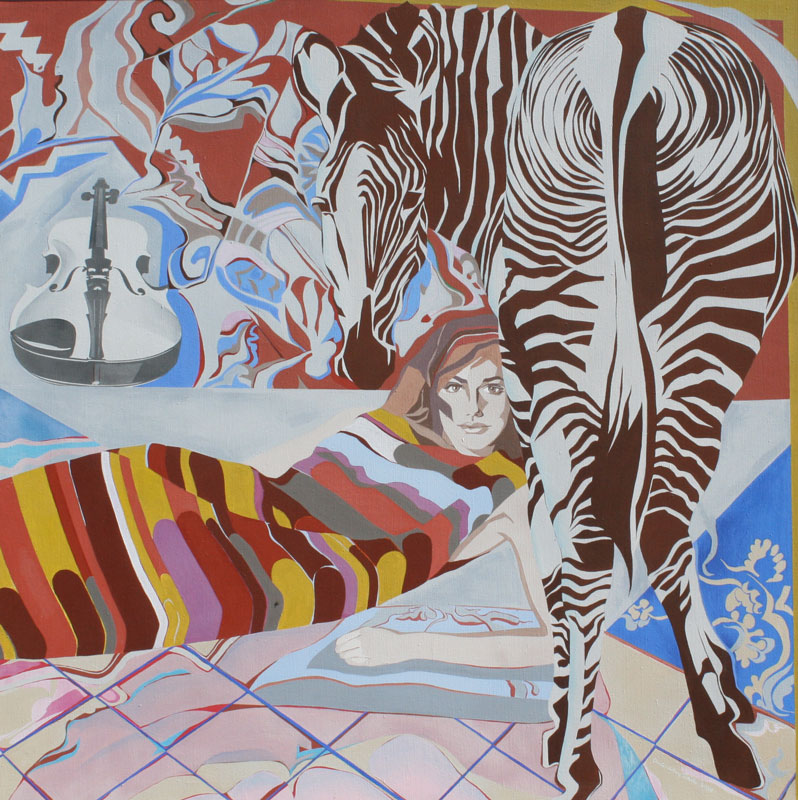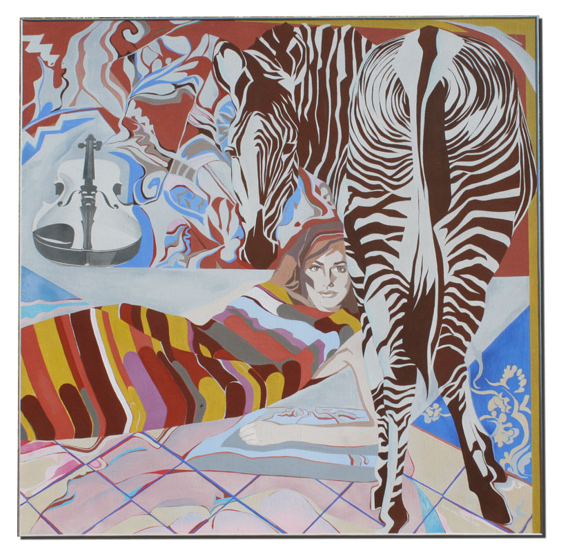 TUCHOLKE, Christel Anthony, (American, 1941-): ''Cumula Nimbus Territory'', Surreal Scene With Figures and Zebra, Oil/Canvas, 58'' x 58'', signed and dated 3/1968. Wisconsin MFA, teacher, exhibitor.