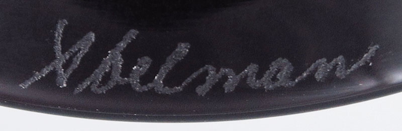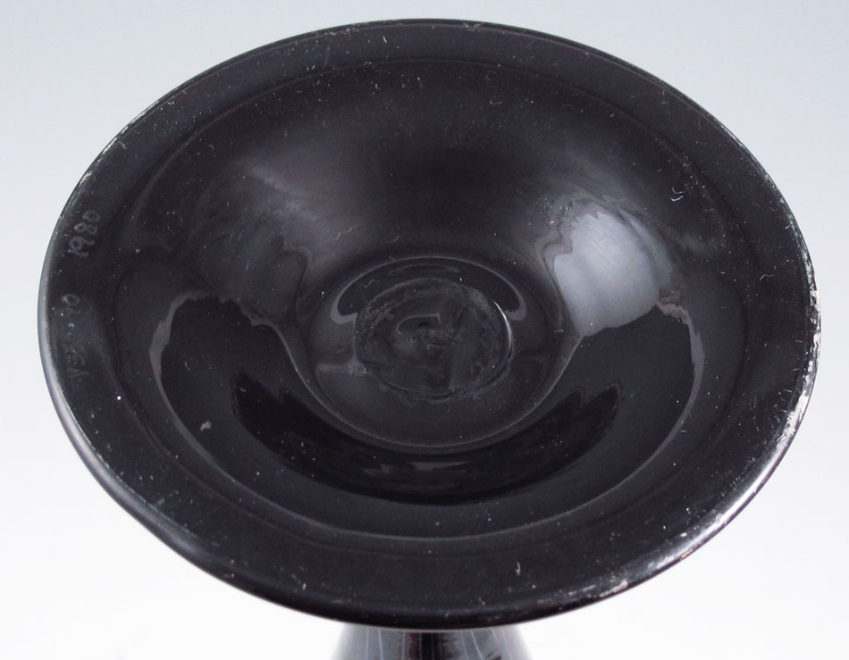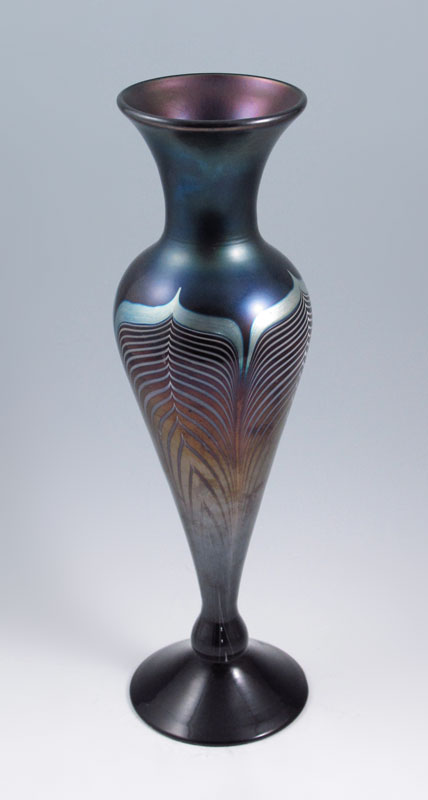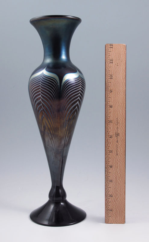STUART ABELMAN PULLED FEATHER ART GLASS VASE: 13 1/4'' tall. Signed and dated 1980. Numbered V350-90.