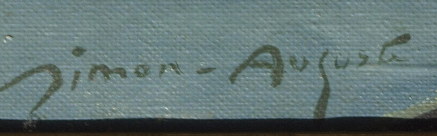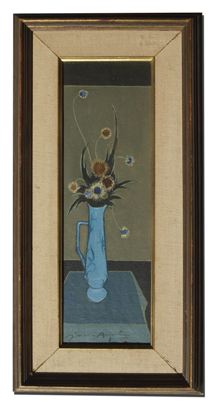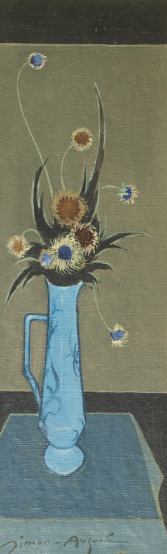 AUGUST, Simone, (French, 20th c): Still Life of Flowers in a Vase, Oil/Canvas, 16 1/2'' x 5 1/2'', signed lower left, period frame with wear, 22'' x 11''.