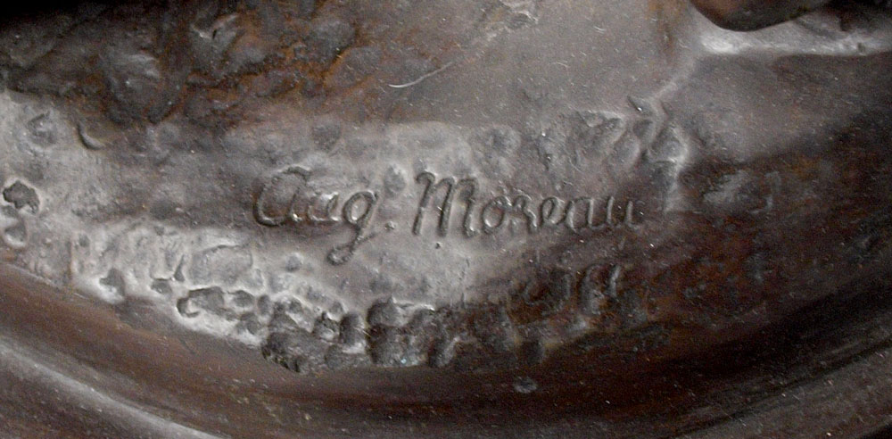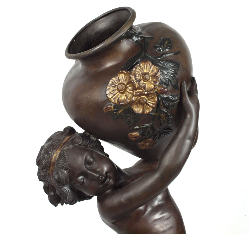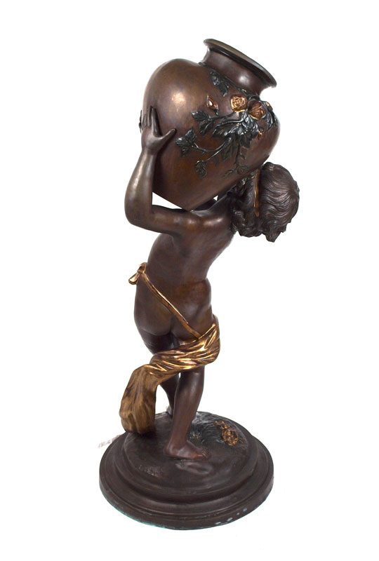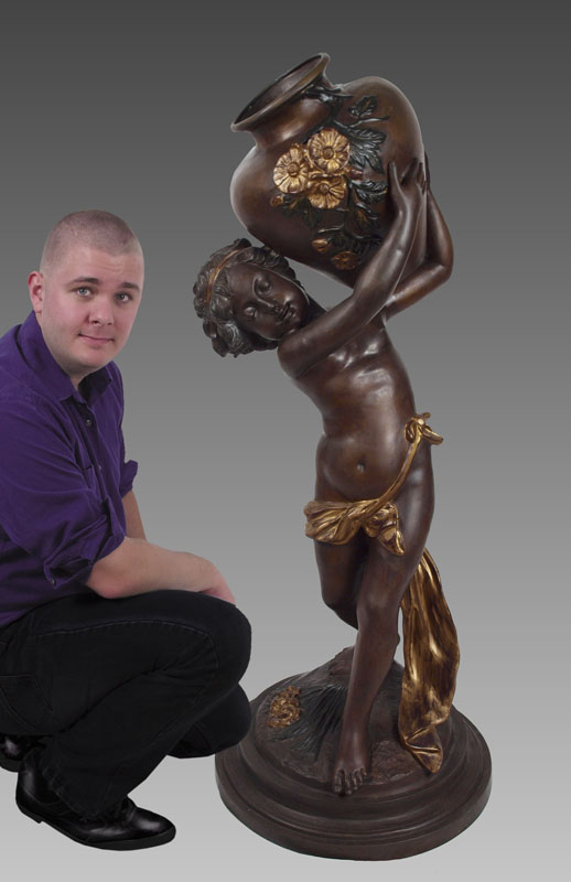 LARGE AFTER MOREAU BRONZE BOY HOLDING WATER VESSEL: After Moreau, 53 3/4'' h. x 21 1/2''.