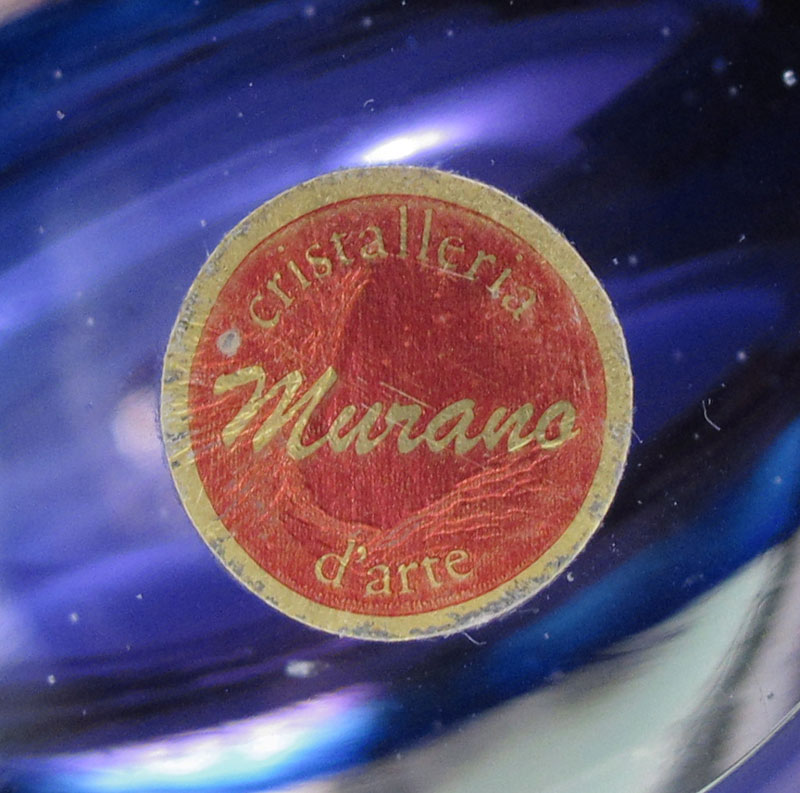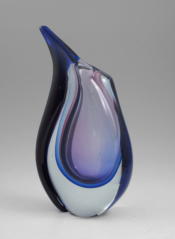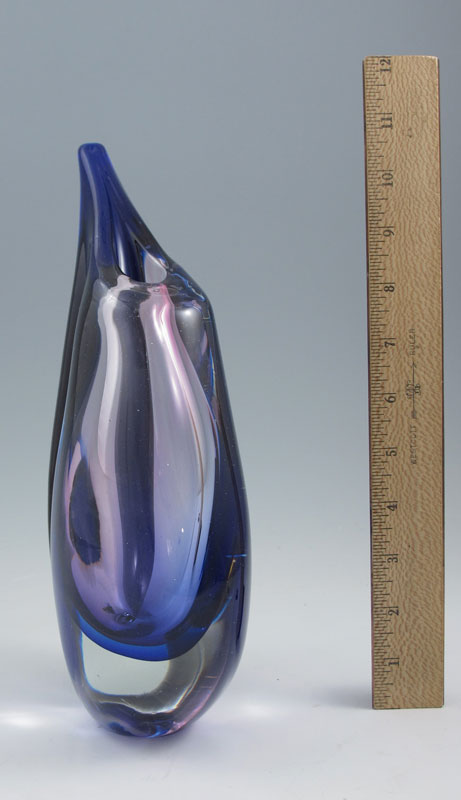MURANO SOMMERSO GLASS VASE: Blue, purple and violet hues. Approx. 12'' tall.c Murano label on its base.