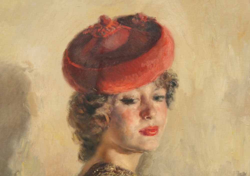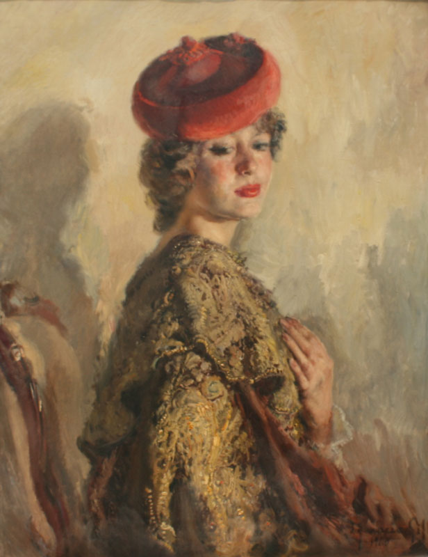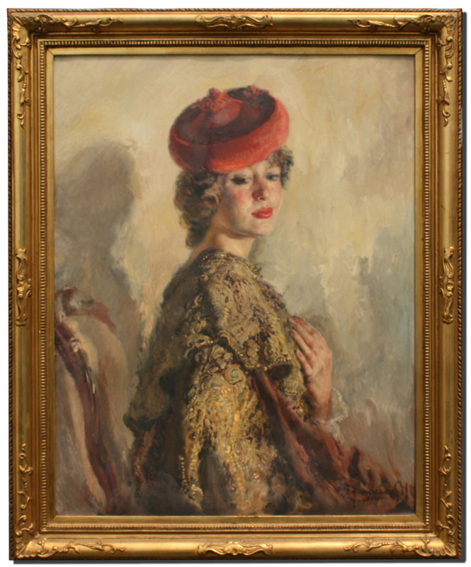 GIL, Ignacio, (Spanish, 1913-2003): Portrait of a Young Woman in Red Hat, Oil/Canvas, 36 5/8'' x 29 1/8'', signed lower right and dated 1960, carved and gilded frame, 42 1/2'' x 35 1/2''.