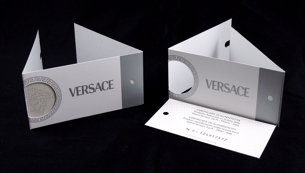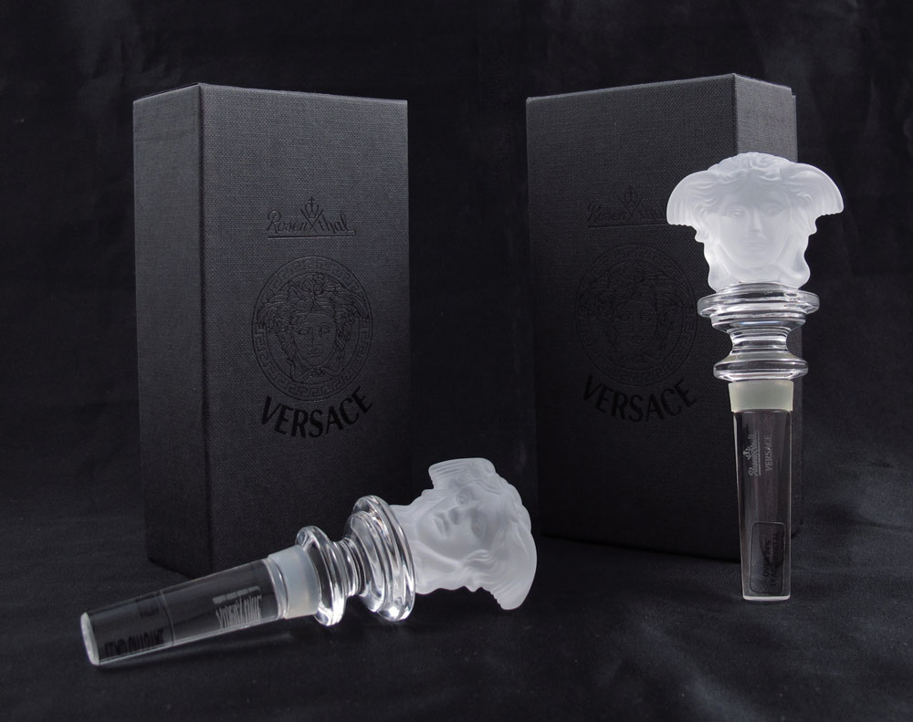 PAIR ROSENTHAL VERSACE WINE STOPPERS: Unused, mint condition with original box and certificates of authenticity. Each stopper 5'' long, boxes 2'' x 6 1/4'' x 3 1/2''.