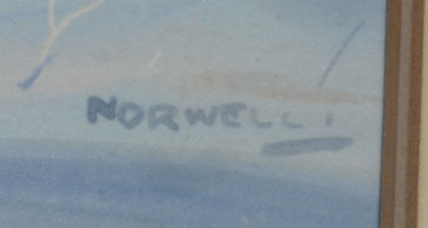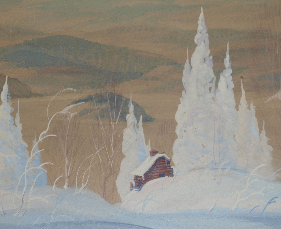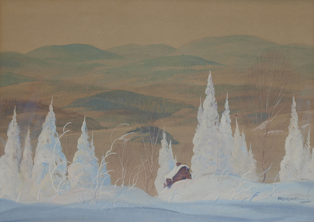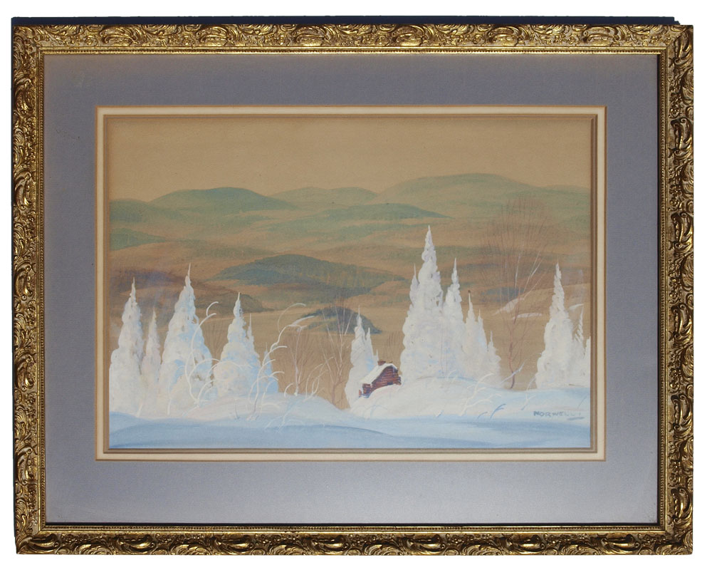 NORWELL, Graham, (Canadian, 1901-1967): Snowy Canadian Landscape With Cabin ,Watercolor and Gouache, sight size 11'' x 15'', signed lower right, gilded frame, 17 1/2'' x 21 1/4''.