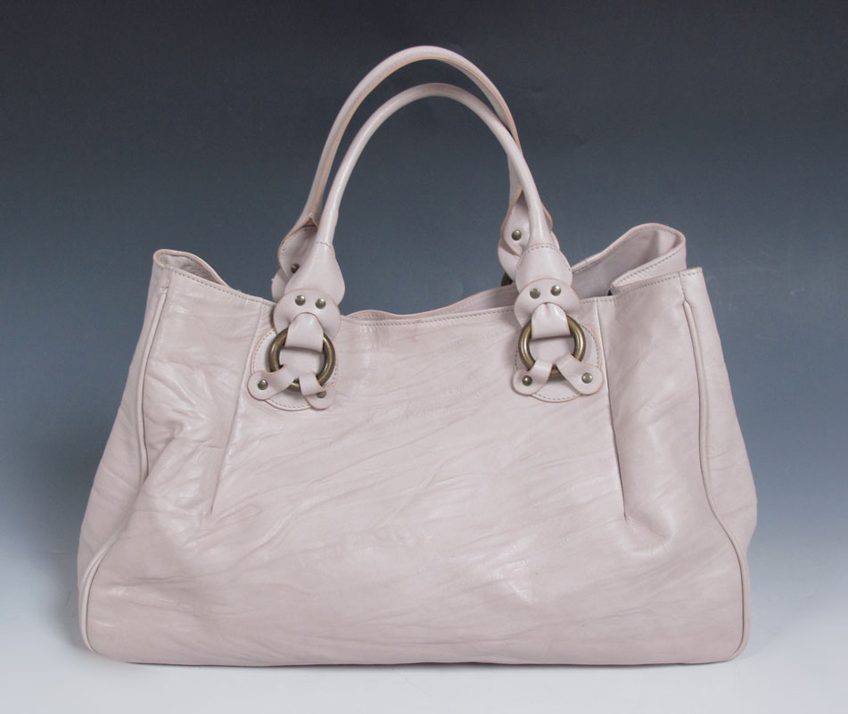 FALORNI LE BORSE ITALIAN LEATHER SATCHEL: Soft leather purse, the satin lined interior divided by zipper compartment. 10' x 15''.