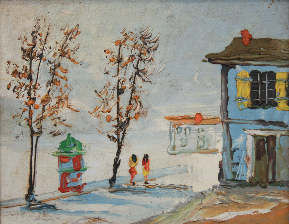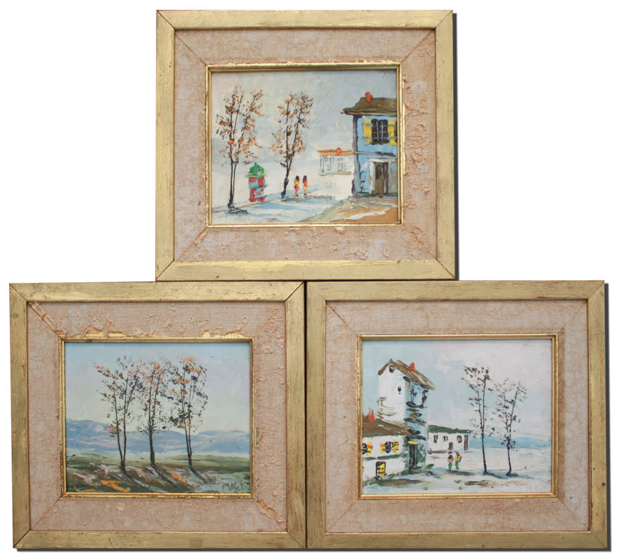 KATZ, Morris, (American, 20th C.): 3 Landscape Paintings, Oils/Board, 8'' x 10'', signed, matching frames with wear and insect damaged mats, 13'' x 15''.
